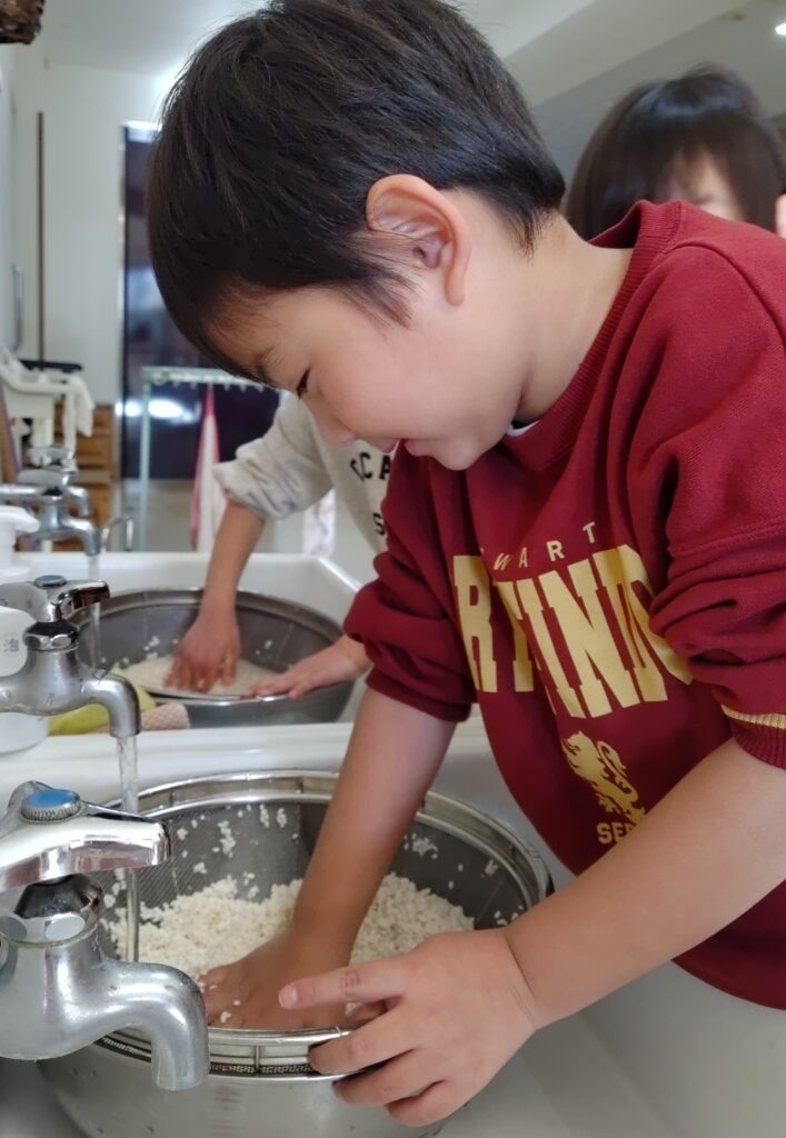 もち米を洗うところから餅つきをしました。