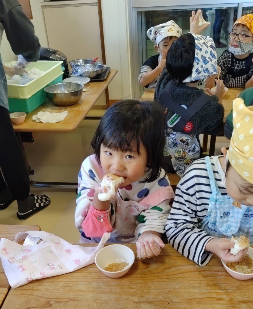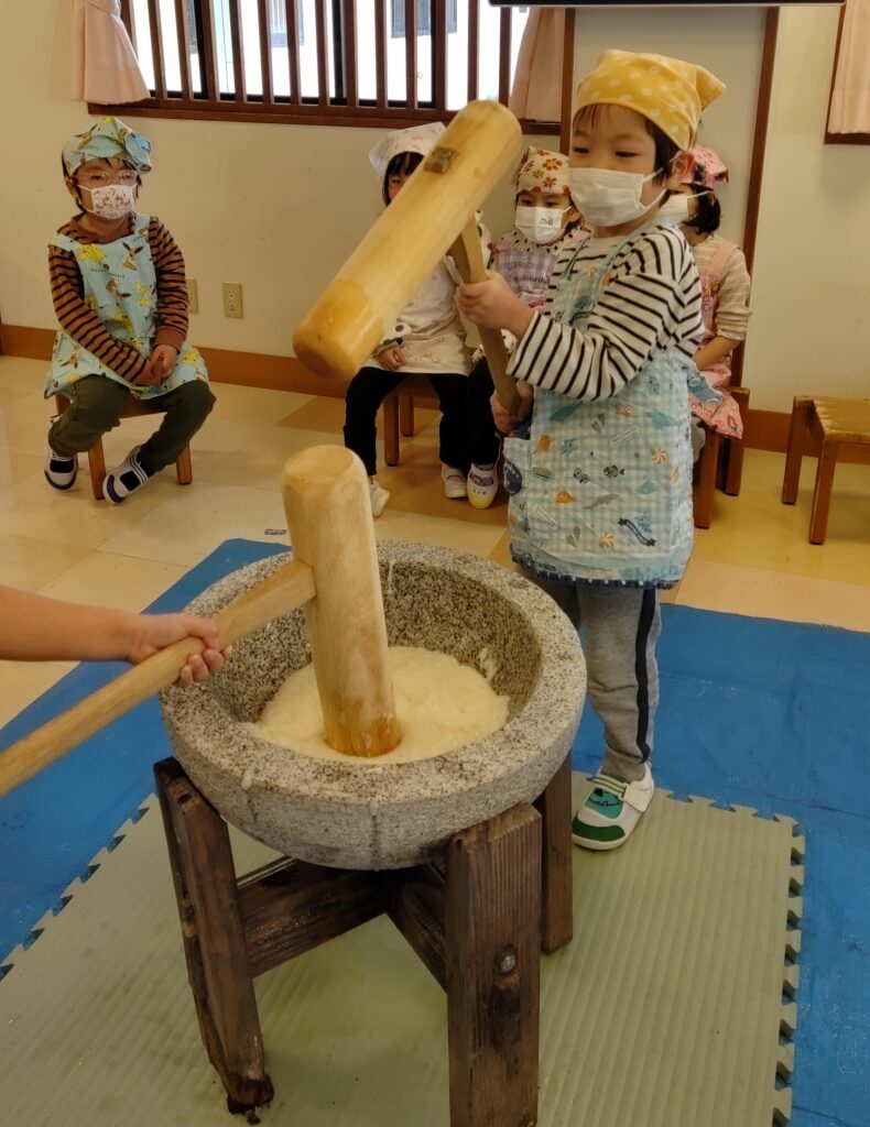 初めて杵を持った子、初めてお餅を食べた子もいてとても喜んでいました♪