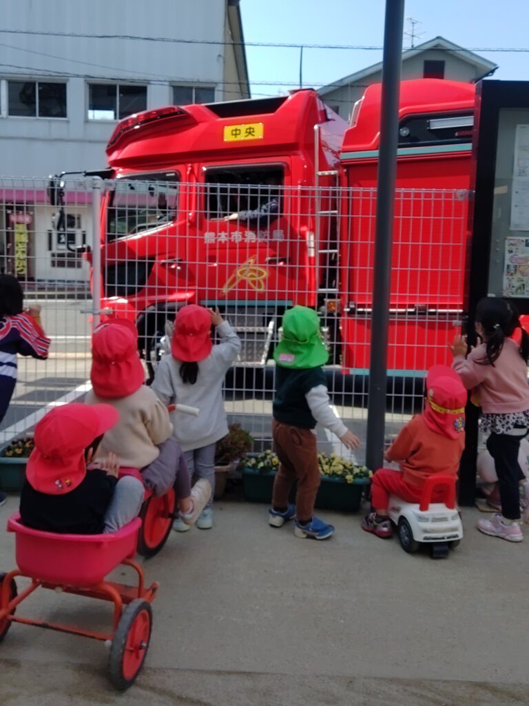 すみれ組(4歳児)と、ひかり組(5歳児)の子どもたちは、幼年消防修了式に参加しました。